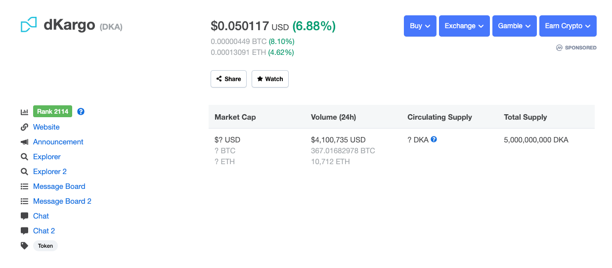 디카르고 코인 토큰 dka 시세 동향 사는 법 네이버 검색어 동향에서 디카르고 코인이 계속해서 검색되고 있어 도대체 이게 뭔가 알아보았다.